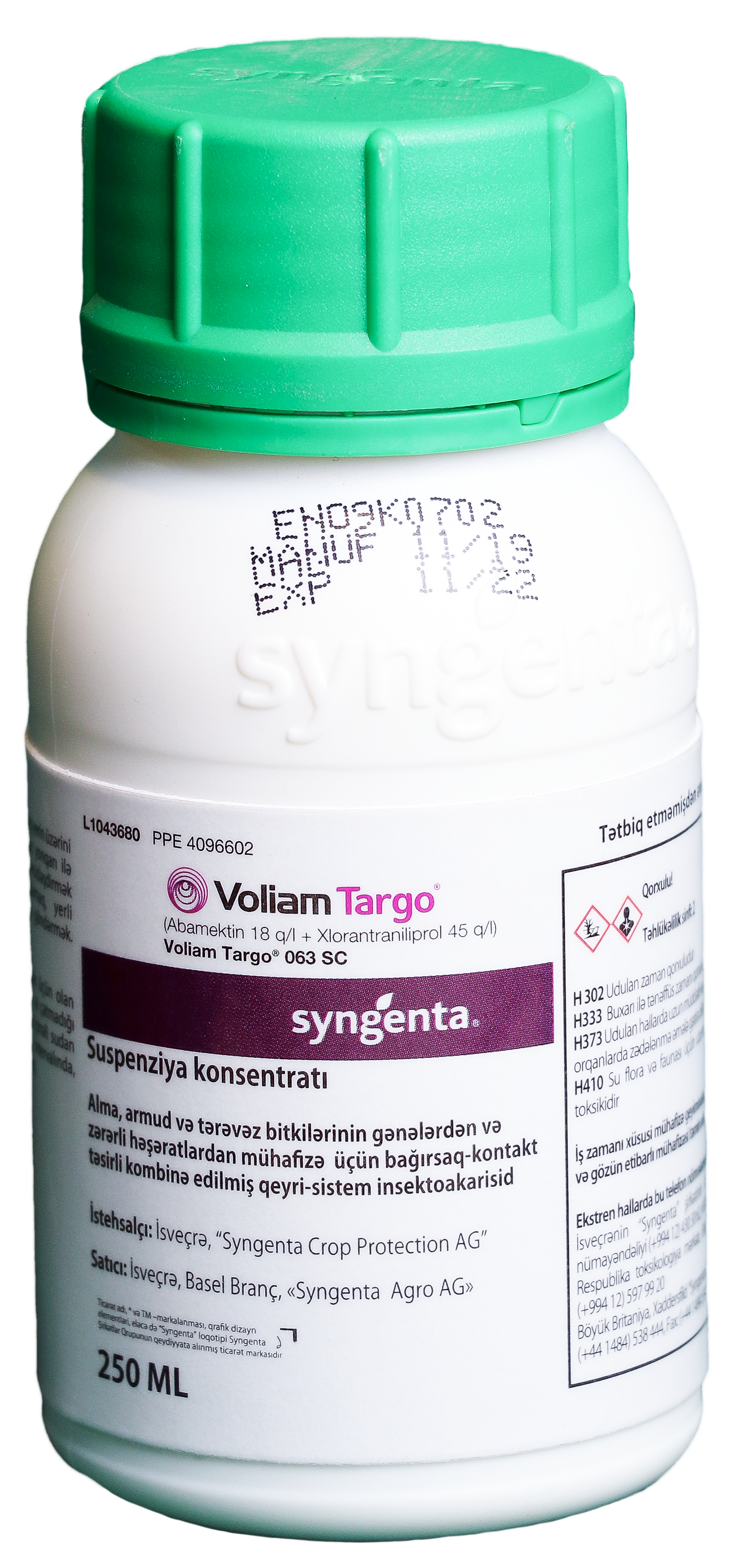 | Voliam targo 063 SC (Хlorantraniliprol45 qr/l+ Аbamektin 18qr/l) "Syngenta", İsveçrə | Alma | Аlma meyvəyeyəni, gənələr | 75 ml/100 l suya |